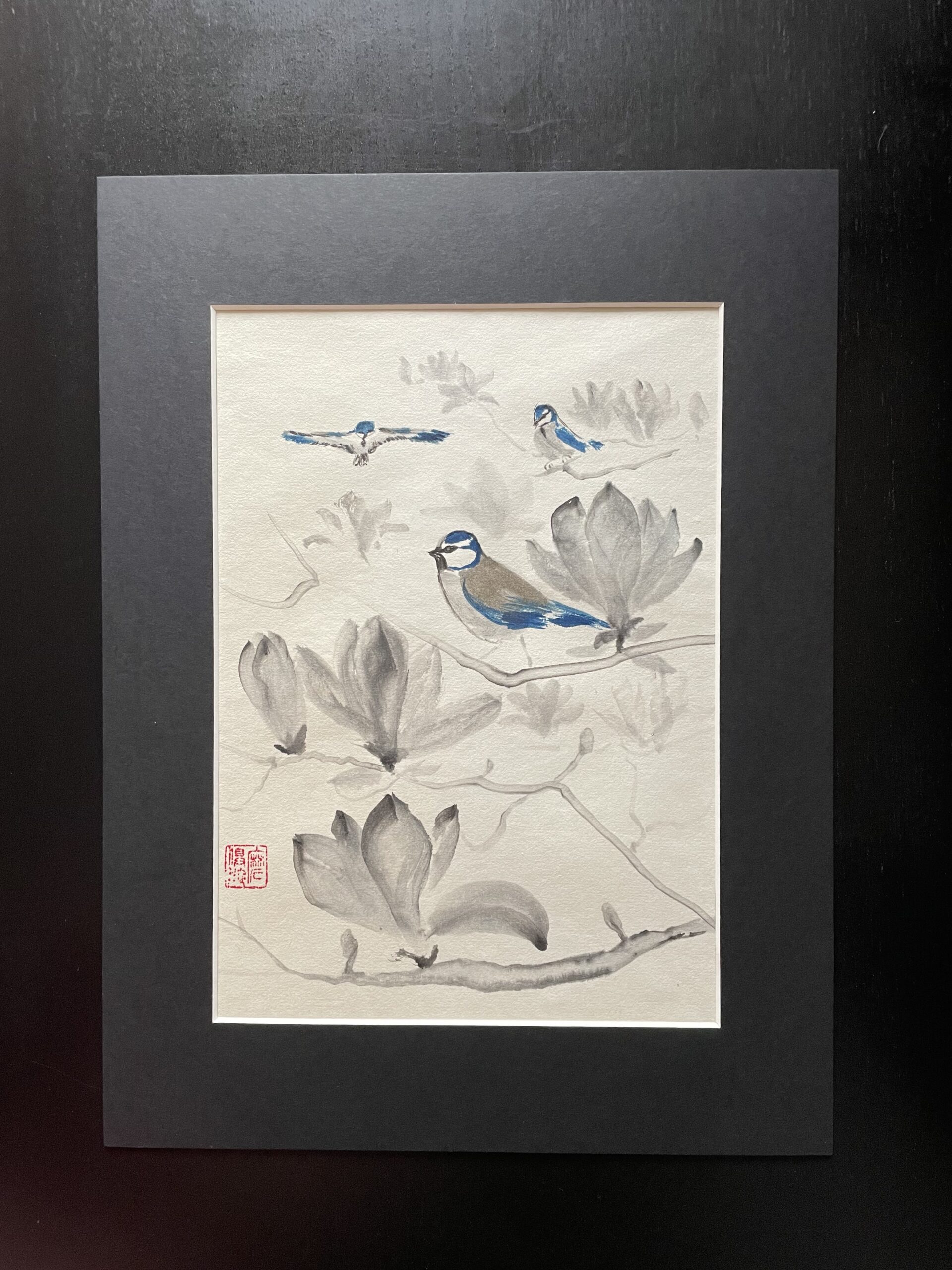 Obraz malowany tuszem na papierze ryżowym, wymiary z passe-partout 30 x 40 cm