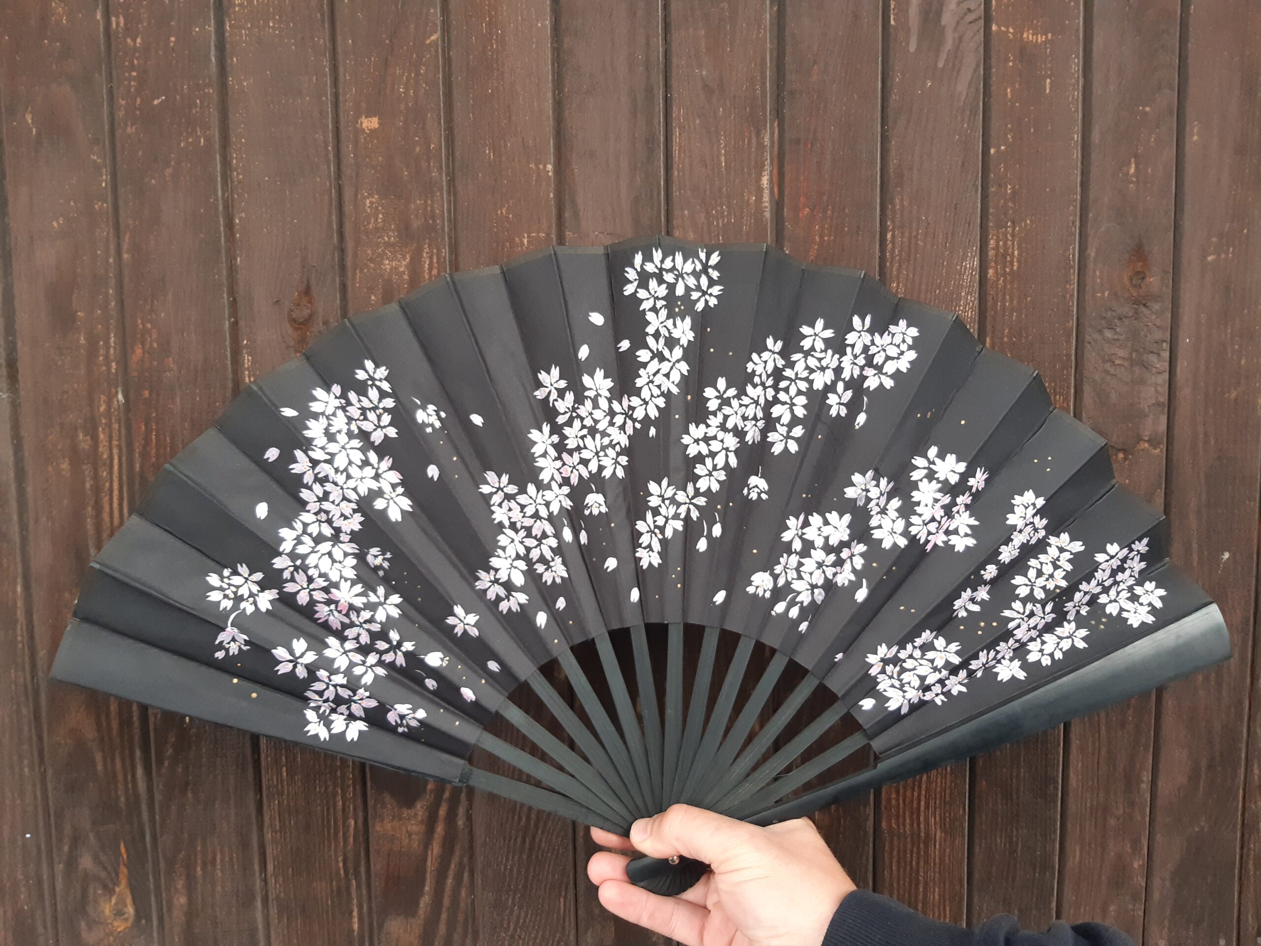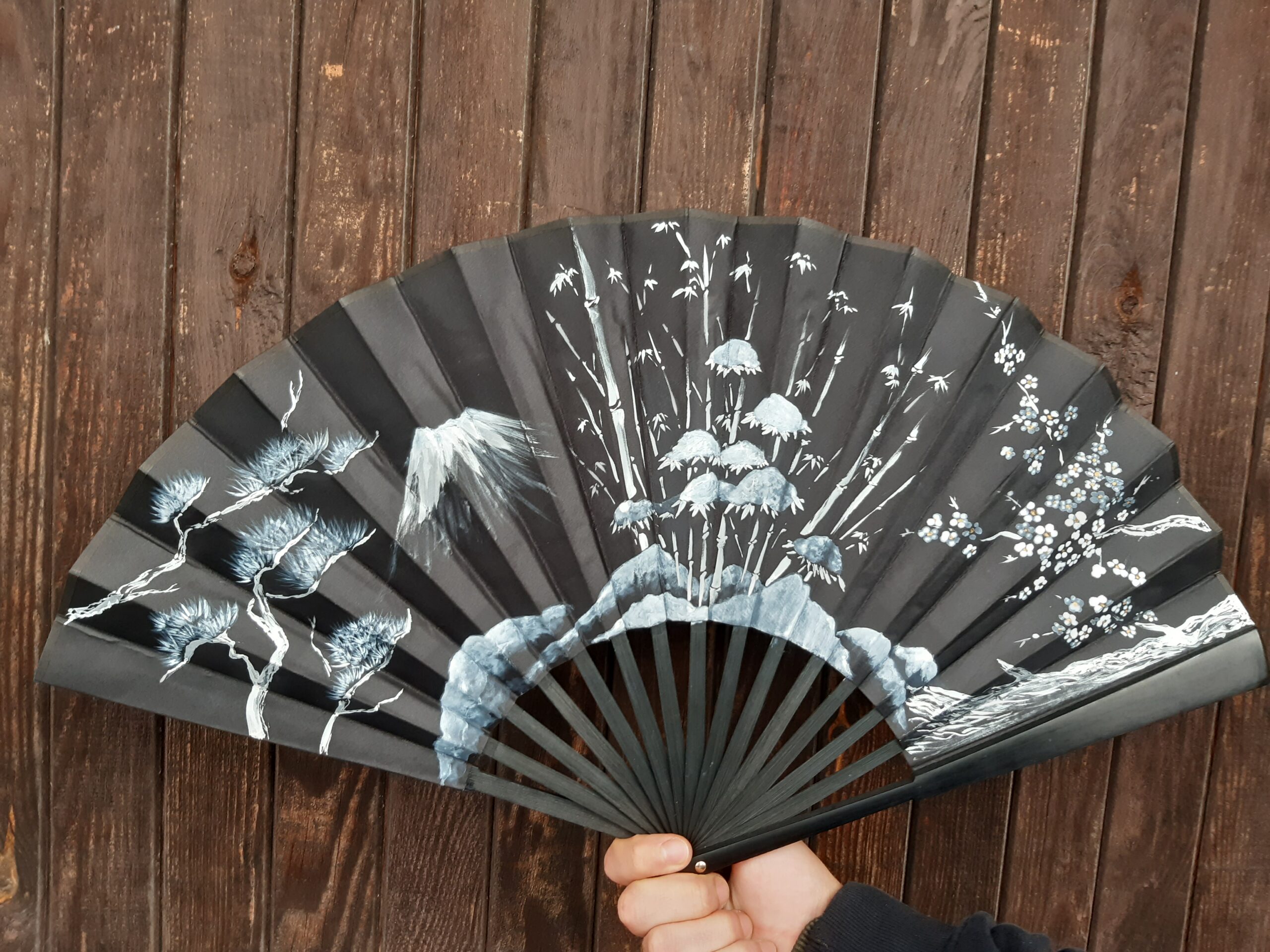 Malowany dwustronny wachlarz – tkanina, tusz.