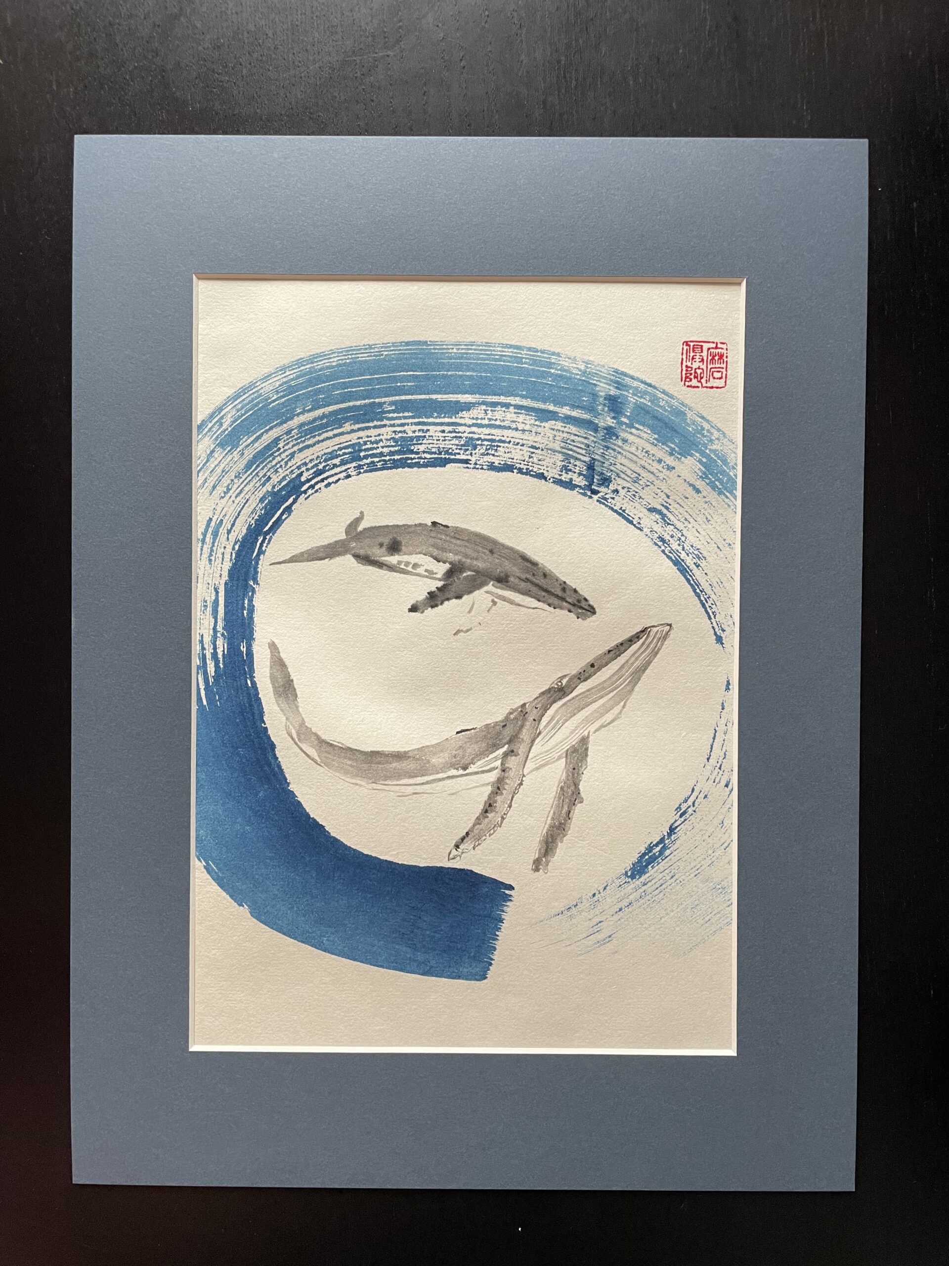 Humbaki, obraz malowany tuszem na papierze ryżowym, wymiary z passe-partout 30 x 40 cm